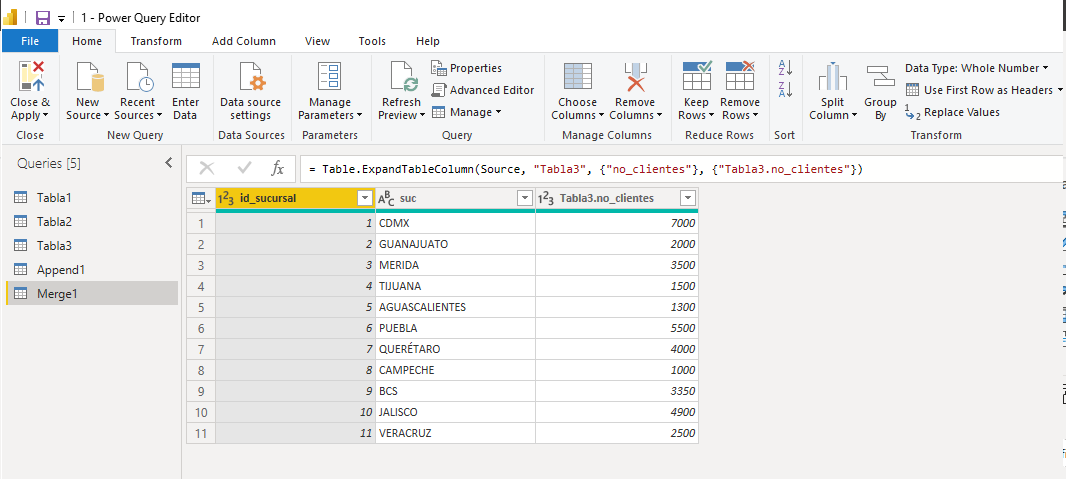 Aparecerá en la ventana de Power Query Ediitor la tabla unida.