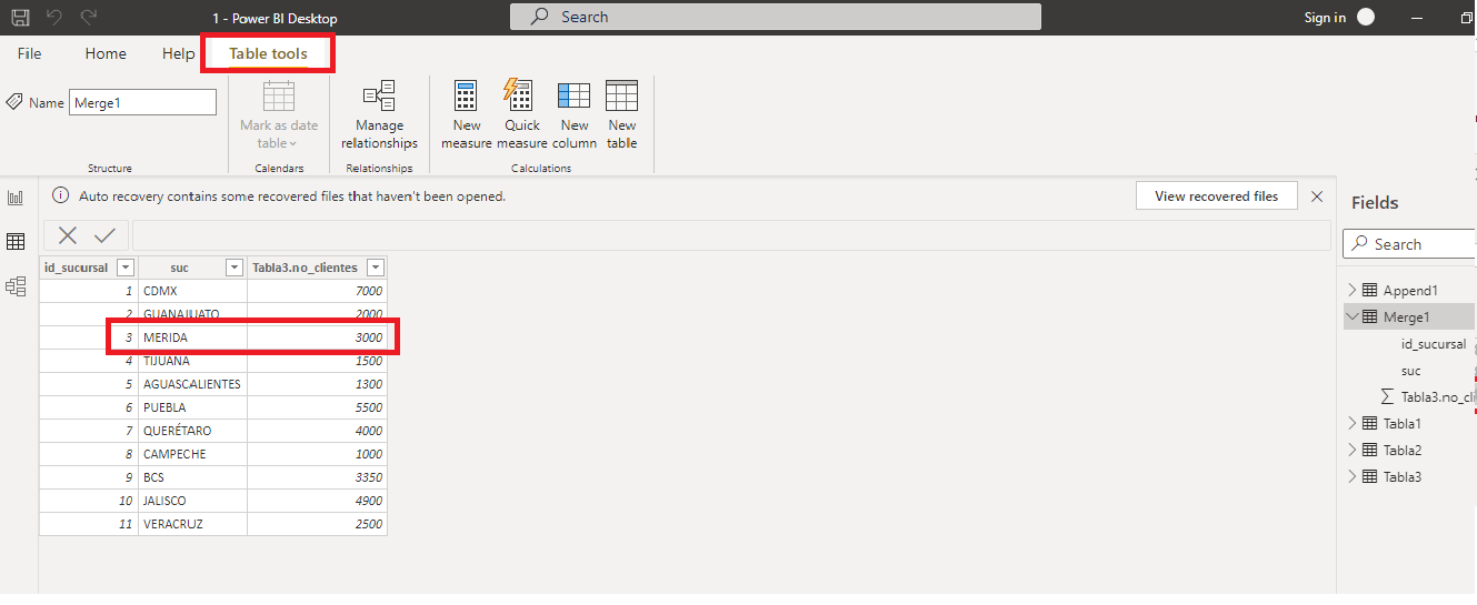 Supongamos que en la tabla anterior, desde la gerencia central, nos indican que en la sucursal Merida, hubo una actualización de la cantidad de clientes, donde ya no son 3500 clientes, sino que 3000.